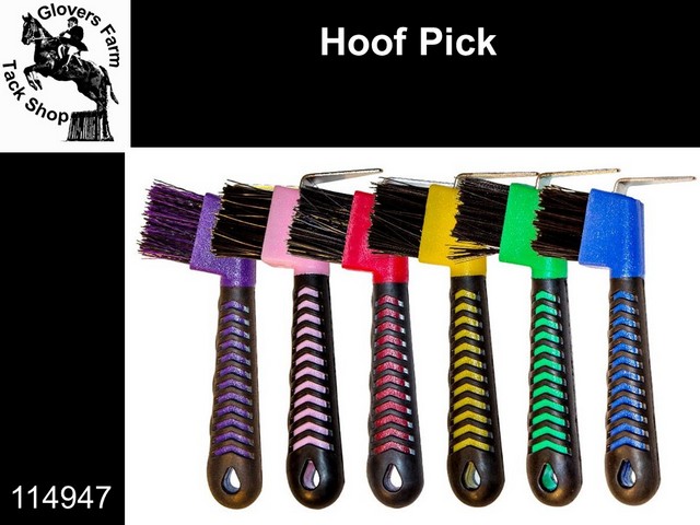 The  Tubtrugs Hoof Pick  has been designed with strength and comfort in mind. This hoof pick has a strong metal pick for removing dirt and muck with tough bristles for an effective clean around the hooves. The handle has a comfortable rubber grip that's useful in wet conditions, with a hole in the base of the handle for hanging on hooks and pegs. Available in a great selection of colours.