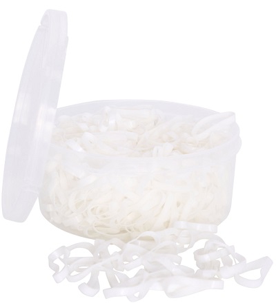 Silicone plaiting bands extra large and extra strong, elastic bands are soft on the manes and easy to reuse. In handy resealable container.