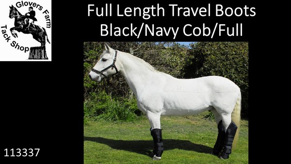 Set of 4 full length travel boots, waterproof nylon outer, padded fur lined. Designed to give knee-hock protection.