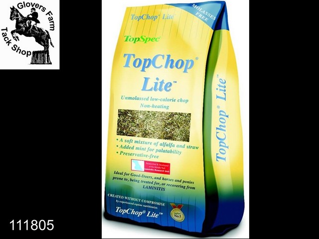 TopChop Lite is a natural product made from alfalfa, oat straw, a light dressing of cold-pressed linseed oil and real mint. TopChop Lite contains no added molasses or any other sugar coating.