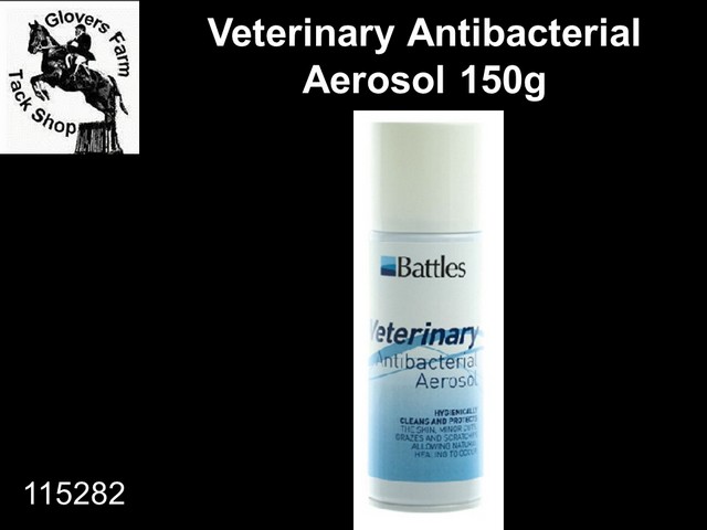 A veterinary antibacterial aerosol for the treatment of superficial wounds, lamb navels and fly strike on sheep. Clear, non-staining formula