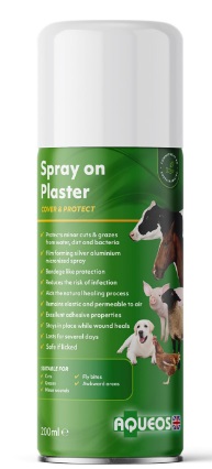 The spray on plaster is an essential first aid item for dog, horse or any animal owner. The plaster gives a bandage like protection by forming a barrier to protect cuts and minor wounds from dirt, water and germs. This then lets the cut or wound heal naturally while being protected. The silver coloured covering remains elastic and permeable to air and is easy it apply to awkward areas and stays in place while the cut or minor wound heals. Depending where the area is, the spray will last a few days and can just be re-applied as needed. It is safe if animals lick the area covered. Competition safe. Less than 1% active ingredient, bio-degradable, pH neutral, cruelty free and vegan friendly.
