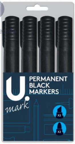 U. BLACK PERMANENT MARKERS 4 PACK