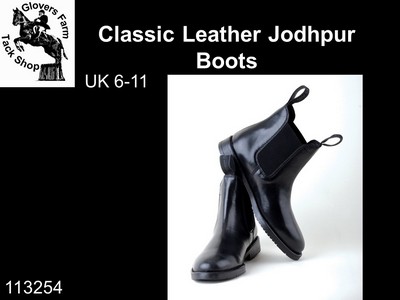 Classic leather Jodhpur boots that are designed in the traditional style with no zippers or laces. Two pull tabs to allow easy on/off. The elastic sides provide flexibility and stretch with moulded soles for comfort. These traditional leather Jodhpur boots are a must-have for every rider.