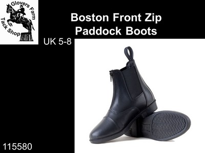 These paddock boots are made from quality leather with a front zip. Pull tab to allow easy on/off and double stitching detail along toe cap. The elastic sides give great range of movement and comfort with non-slip traditionally styled moulded rubber soles.
