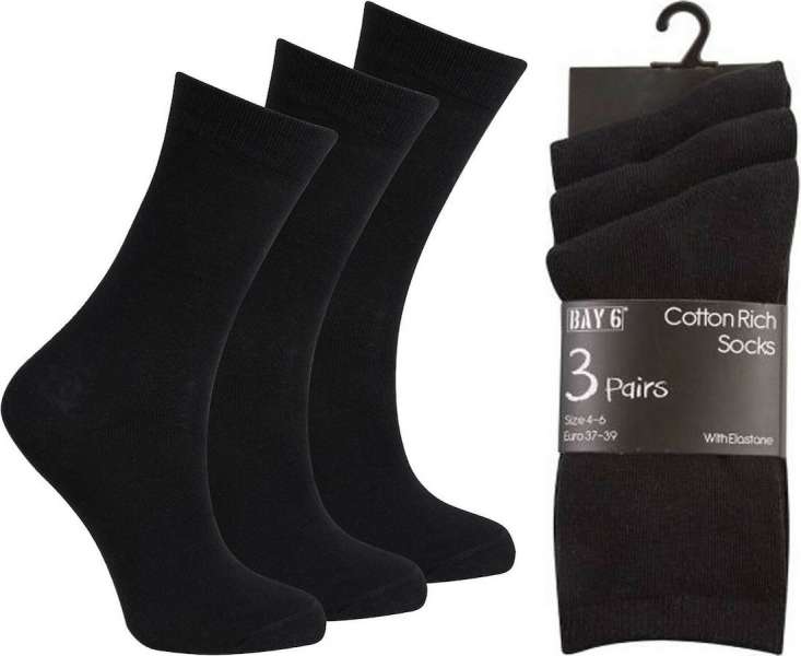 These Boys and Girls school socks in a 3 pair pack feature a cotton rich mixture for a natural feel, softness and comfort with elastane which ensures extra durability, available in solid black size 12C / 3